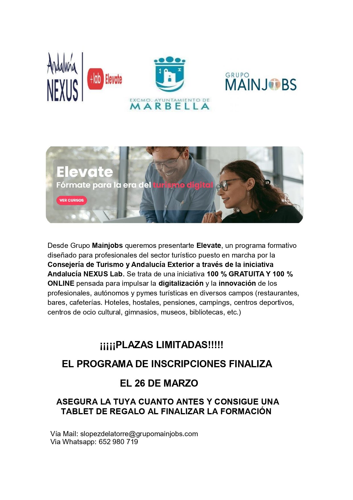 PLAZAS LIMITADAS (FIN DE PROGRAMA 26 DE MARZO)