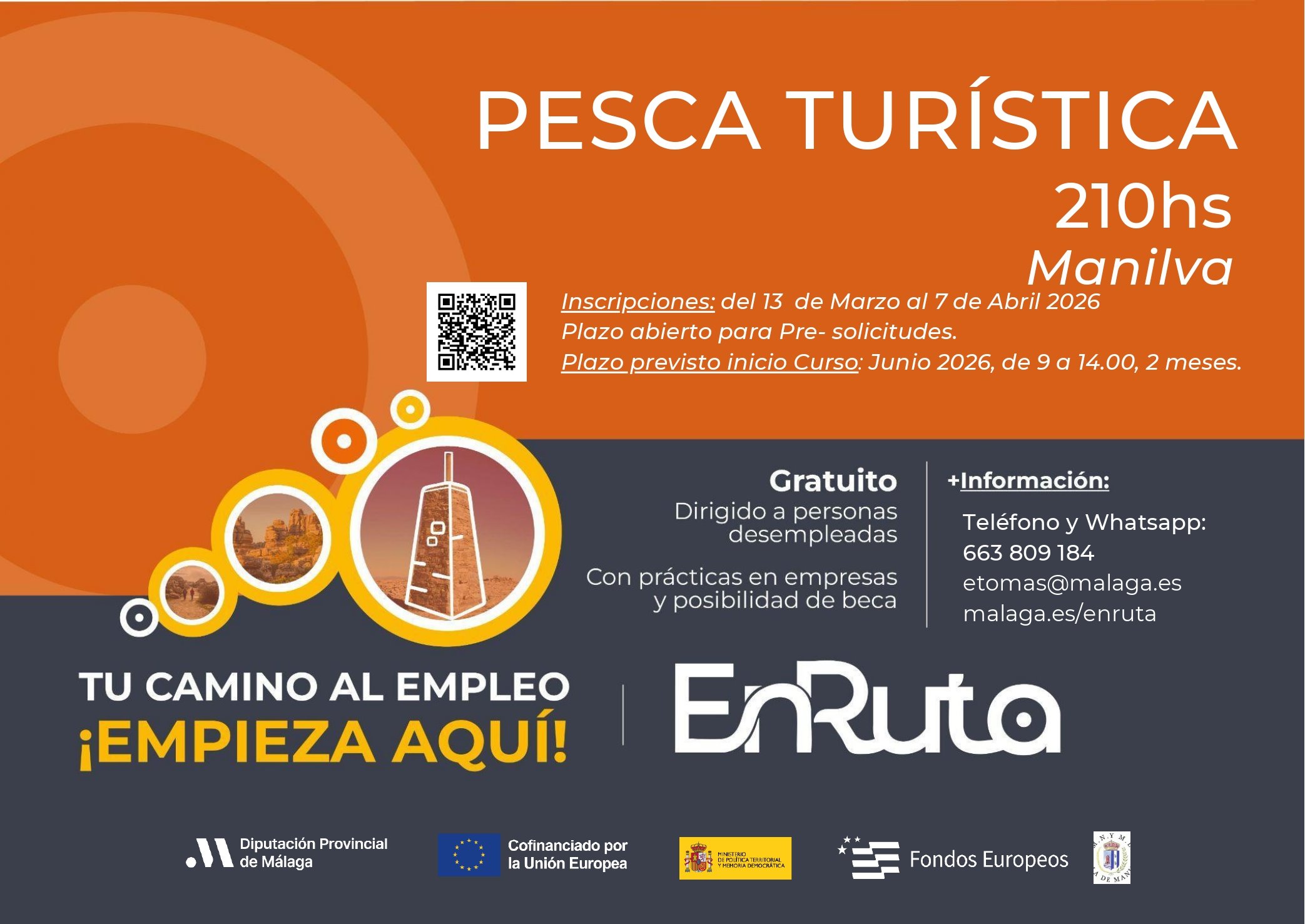 Informamos de una convocatoria del Proyecto abierta hasta el 7 de abril, concretamente dos itinerarios (Socorrismo y Pesca Turística) que se realizan en la localidad de Manilva.